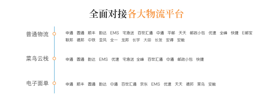 全渠道訂單自動化處理 全渠道訂單統一收訂 訂單智能監控,防止漏單、錯單 電子面單全面對接,每小時3000訂單輕松打 多平臺、多店鋪庫存統一管理 多平臺庫存自動同步,線上線下庫存同步 庫存數據自動更新,避免超賣 智能補貨,及時補貨備貨 各類賬目清晰明了 與供應商、分銷商往來對賬清晰準確 物流、快遞費用自動結算 各平臺運營數據輕松掌握,獨立核算